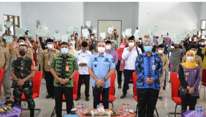 “Adapun total sertifikat yang dibagikan 7010, yang sudah dibagikan sebanyak 2045. Hari ini yang dibagikan serentak sebanyak 4965 sertifikat tersebar di 14 kecamatan,” paparnya.