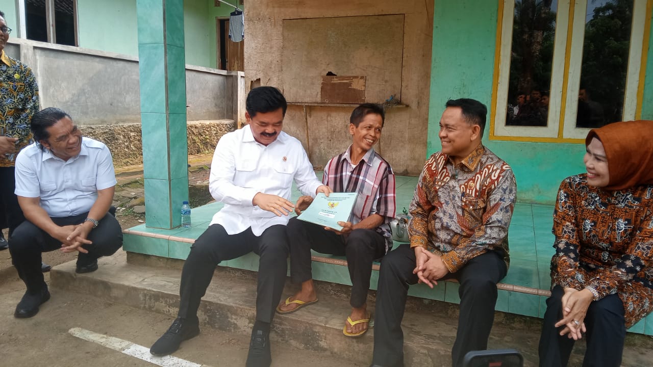 SERANG – Masih dalam rangkaian kunjungan di Provinsi Banten, Menteri Agraria dan Tata Ruang/Kepala Badan Pertanahan Nasional (ATR/BPN), Hadi Tjahjanto membagikan sertipikat hak atas tanah di Kabupaten Serang, Kamis (27/07/2023).
