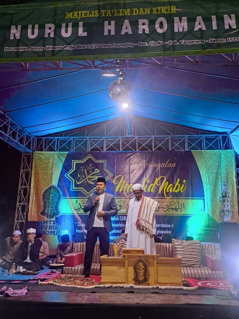 Baraknews Kab.Tangerang–Majelis Ta’lim dan Dzikir Nurul Haromain Perumahan Pesona Wibawa Praja Desa Jeungjing Kecamatan Cisoka menggelar acara peringatan Maulid Nabi Muhammad SAW pada Sabtu malam Minggu (8/10/2022).