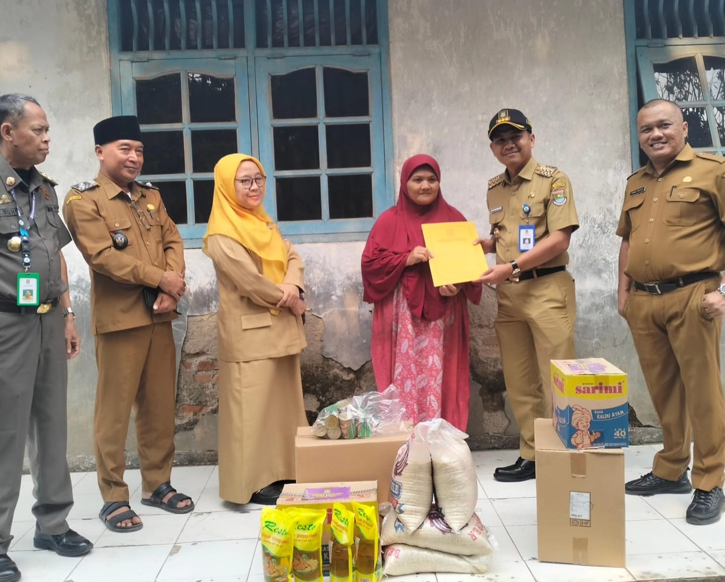 Keluarga Rohman menerima bantuan dari Camat Tigaraksa dan Dinas Sosial yang dipimpin Hj. Lili Amaliah Kasi Rehabilitasi Korban Bencana