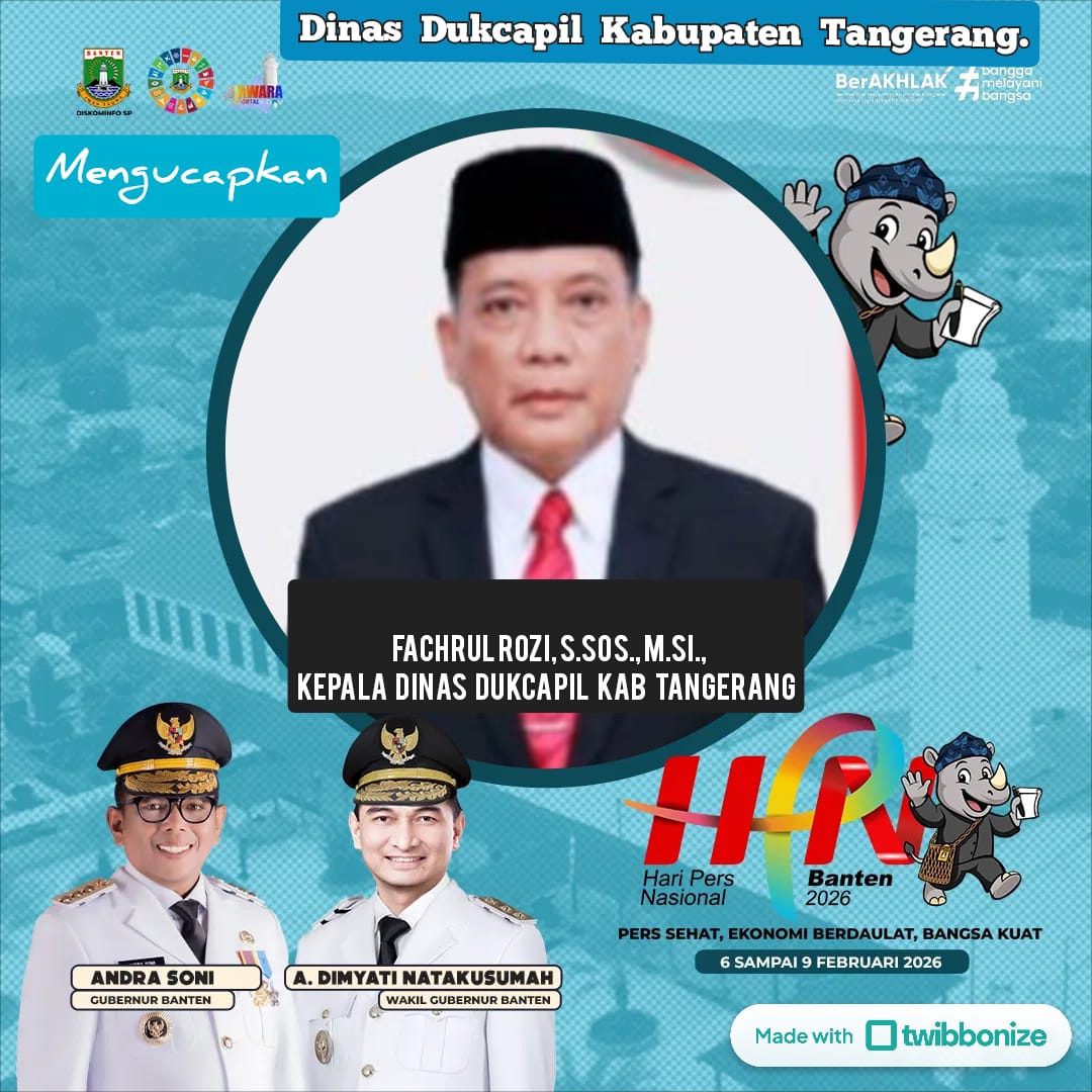 Kepala Dinas Kependudukan dan Pencatatan Sipil (Dukcapil) Kabupaten Tangerang saat ini adalah Fachrul Rozi, S.Sos., M.Si., mengucapkan , Selamat Hari Pers Nasional 2026 (HPN) yang diperingati setiap tanggal 9 Februari di seluruh Indonesia sebagai bentuk penghormatan atas peran pers dalam kehidupan berbangsa dan bernegara.