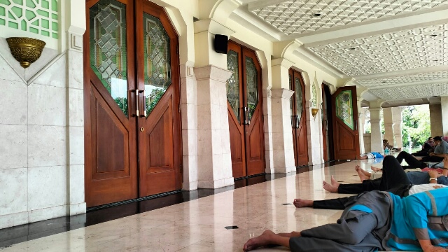 Selain lantai marmer yang lebih adem untuk orang yang berpuasa menurut Moh. Yusuf juga diarea Selasar masjid lebih tenang tidak ada hiruk pikuk suara kendaraan sehingga bila ia tiduran maka tak berselang lama pasti tertidur pulas. (***)