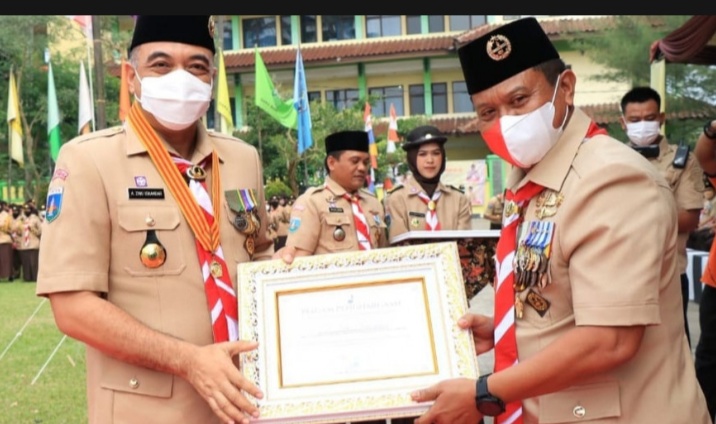 Baraknews kab.Tangerang,–Bupati Tangerang Ahmed Zaki Iskandar yang juga Ketua Mabicab Gerakan Pramuka Kabupaten Tangerang menerima penghargaan sebagai Mabicab Peduli dari Kwarnas dan Kwarda Banten Gerakan Pramuka. Zaki menghadiri upacara peringatan HUT Gerakan Pramuka ke-61 yang dipimpin Wakil Ketua Kwarnas Gerakan Pramuka, Yuniar Ludfi, di halaman Kitri Bakti Curug.