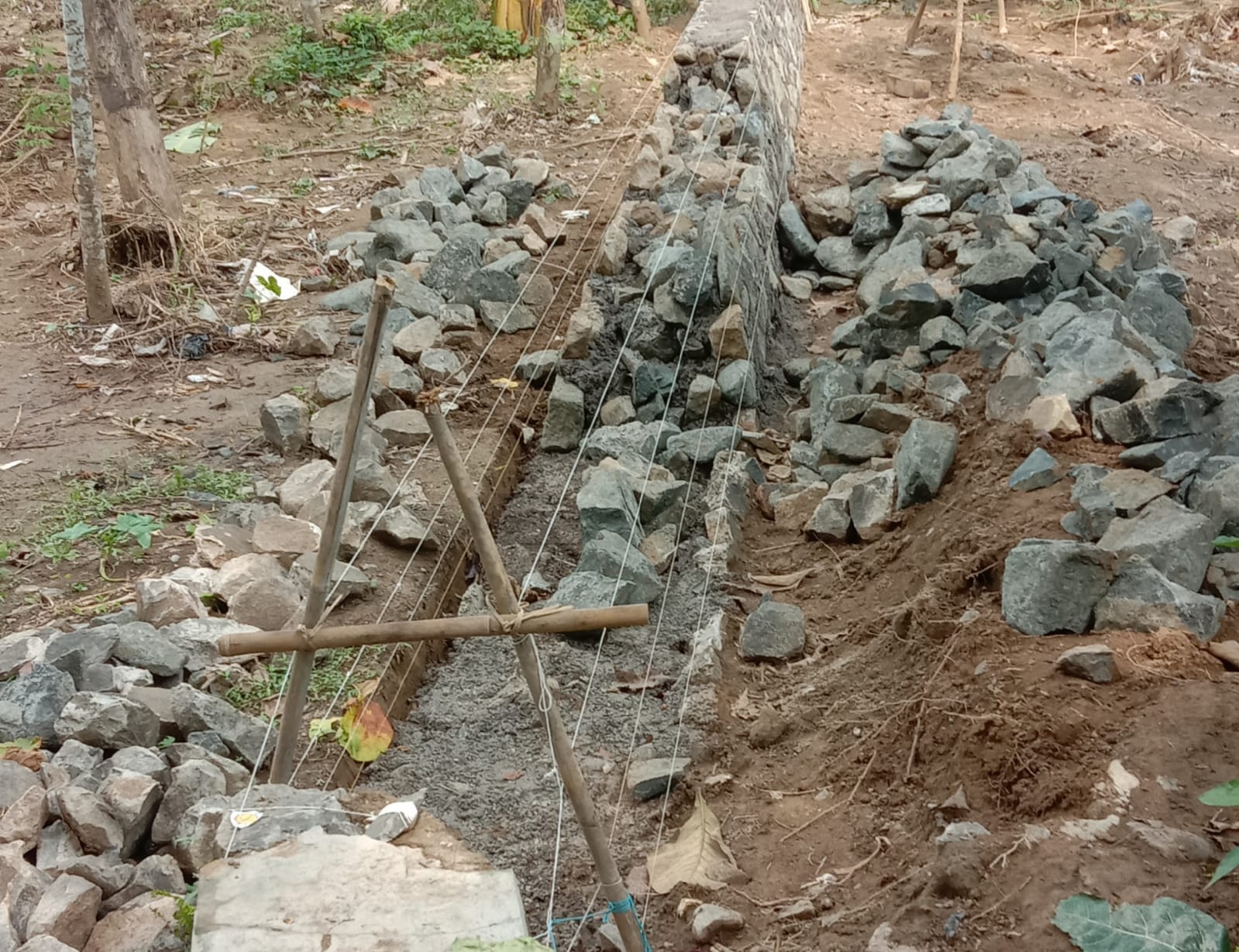 Terlihat pekerjaan tersebut di kerjakan bukan dari pondasi baru melainkan langsung di pasang dari runtuhan/bongkar yang sudah ada (Indra)