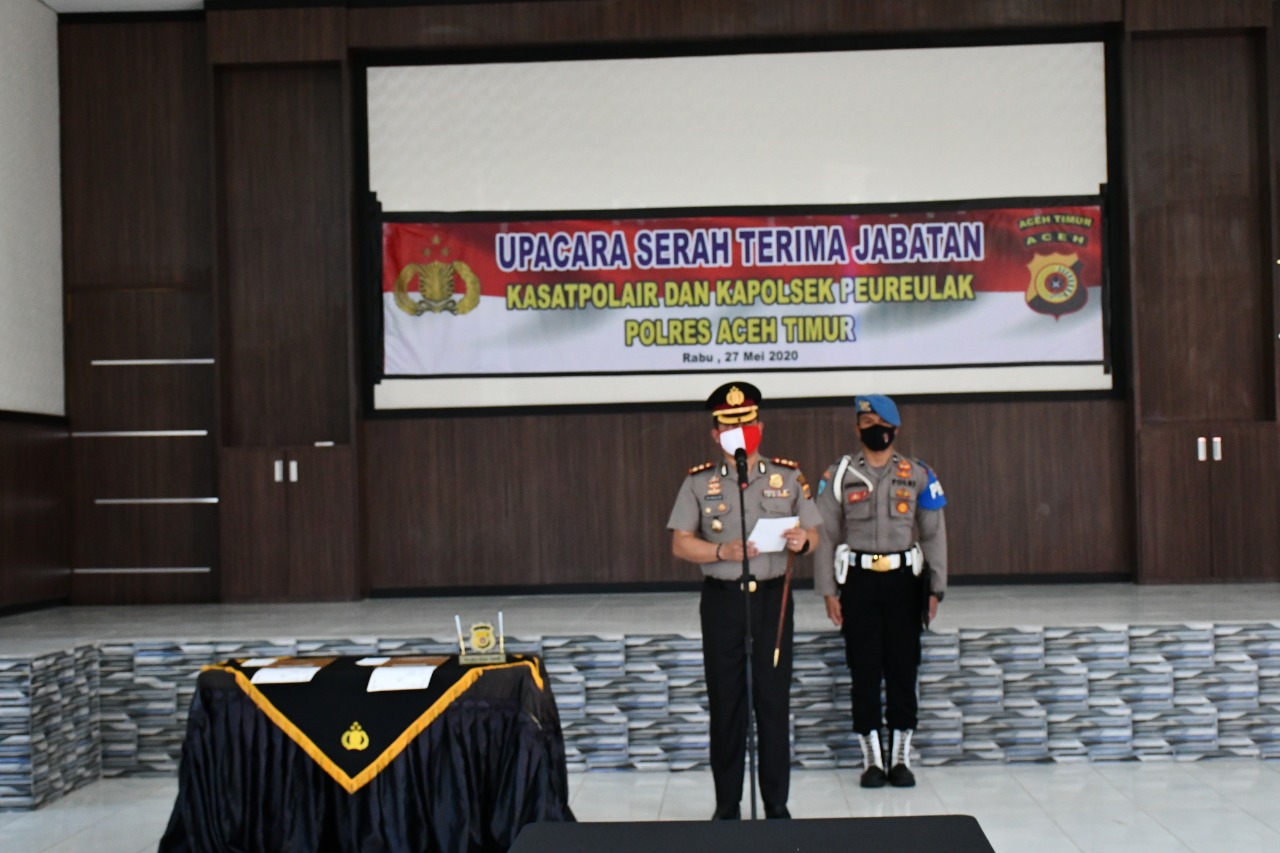 Dalam amanatnya Kapolres menyampaikan, “Saya secara pribadi dan selaku Kapolres serta keluarga besar Polres Aceh Timur menyampaikan penghargaan dan terima kasih kepada Pejabat Lama atas segala dedikasi serta pengabdiannya dalam melaksanakan tugas dan selamat bertugas ditempat yang baru.
