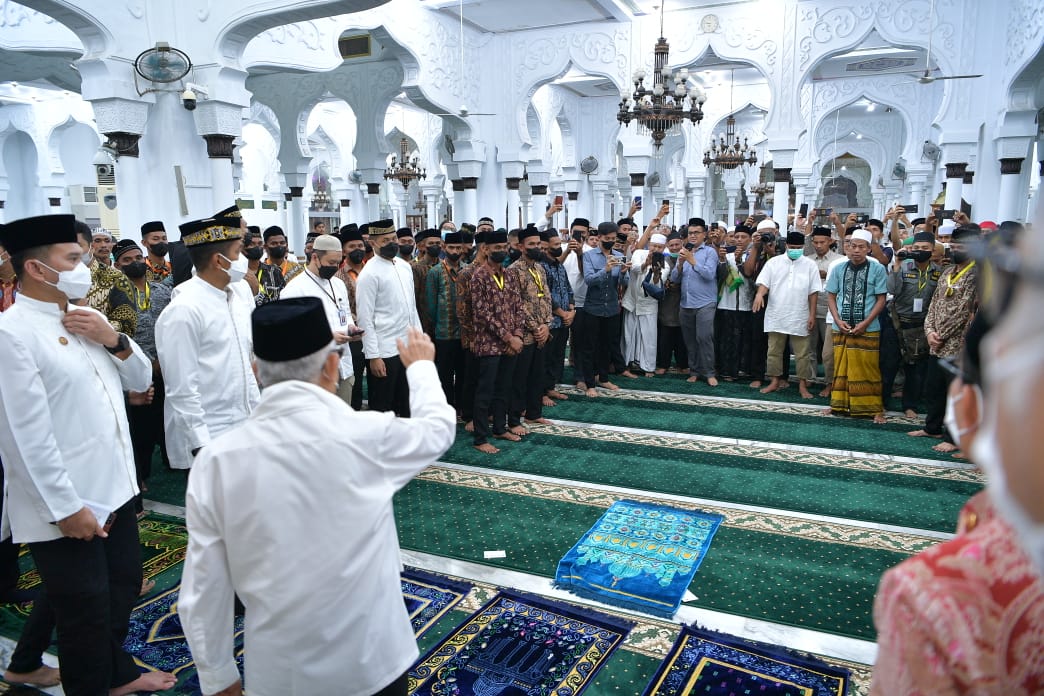 “Ramadan yang mubarak ini marilah kita jadikan sebagai momentum untuk menjadikan kita orang yang bertakwa kepada Allah SWT,” tutur Wapres saat memberikan tausiah sebelum salat Tarawih di Masjid Raya Baiturrahman Banda Aceh, Rabu malam (13/04/2022).