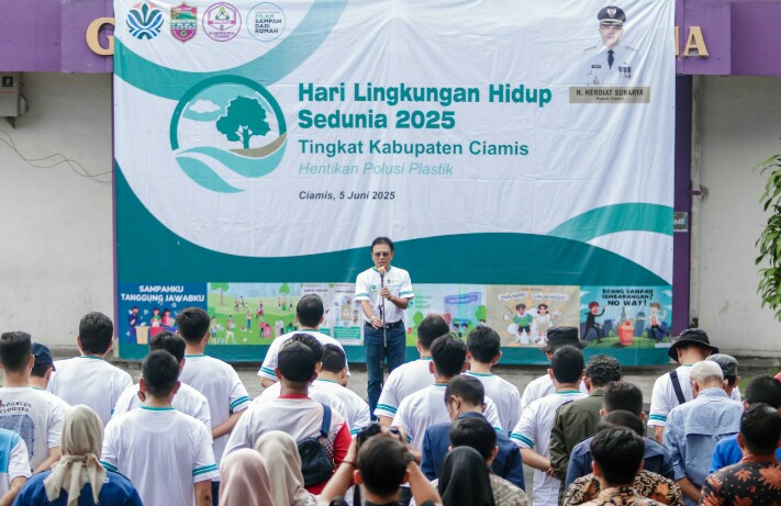 KABUPATEN CIAMIS– Dalam rangka memperingati Hari Lingkungan Hidup Sedunia 2025, Pemerintah Kabupaten Ciamis menggelar apel bersama yang dipimpin langsung oleh Bupati Ciamis, Herdiat Sunarya, bertempat di halaman Gelanggang Galuh Taruna (GGT), Kamis (05/06/2025). Kegiatan ini dilanjutkan dengan aksi nyata pemungutan sampah di kawasan Pasar Manis dan Terminal Ciamis.