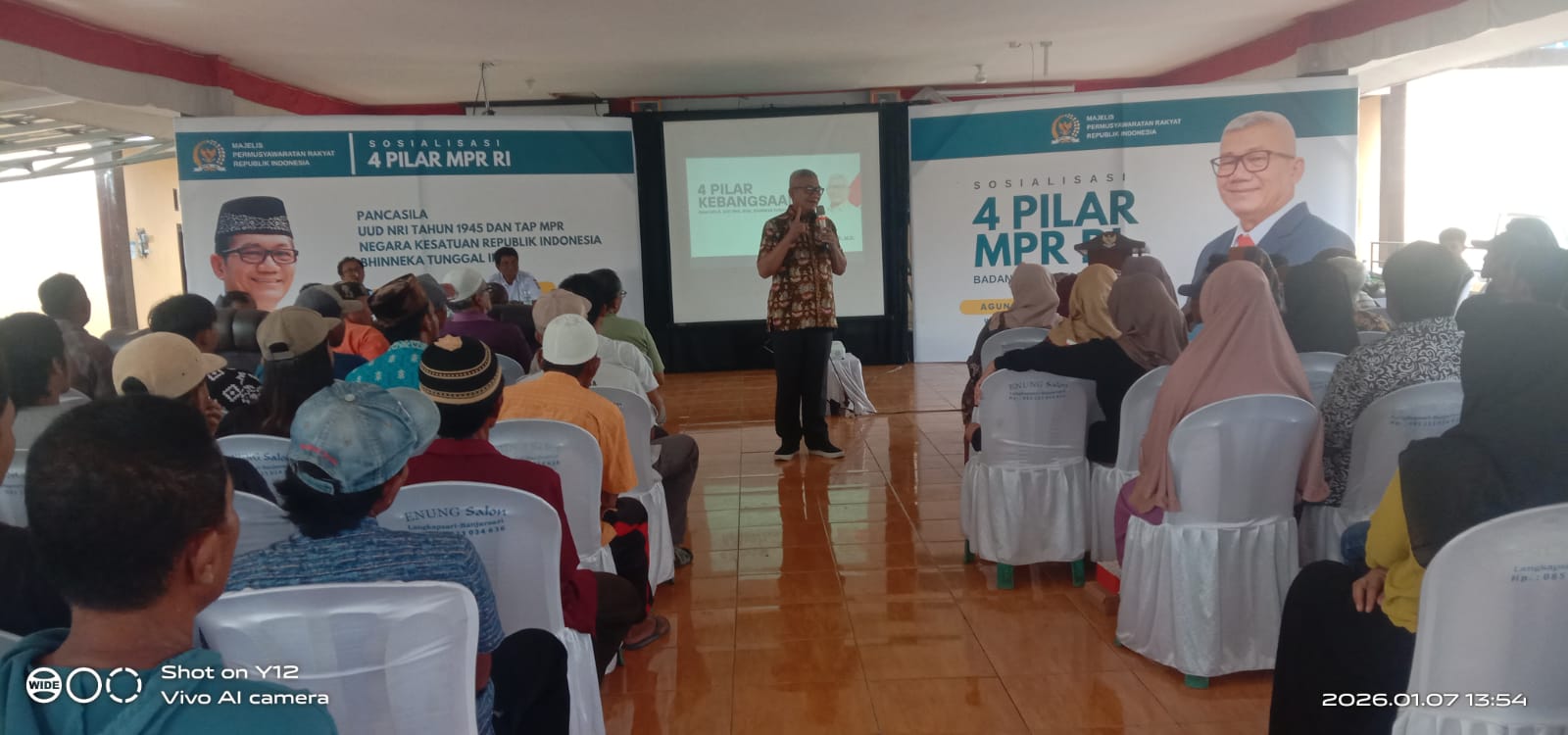 Peserta yang hadir dalam kegiatan sosialisasi empat pilar, berasal dari kader dan simpatisan partai Golkar, tokoh Agama dan tokoh masyarakat sewilayah exs kewedanaan Banjarsari, kabupaten Ciamis