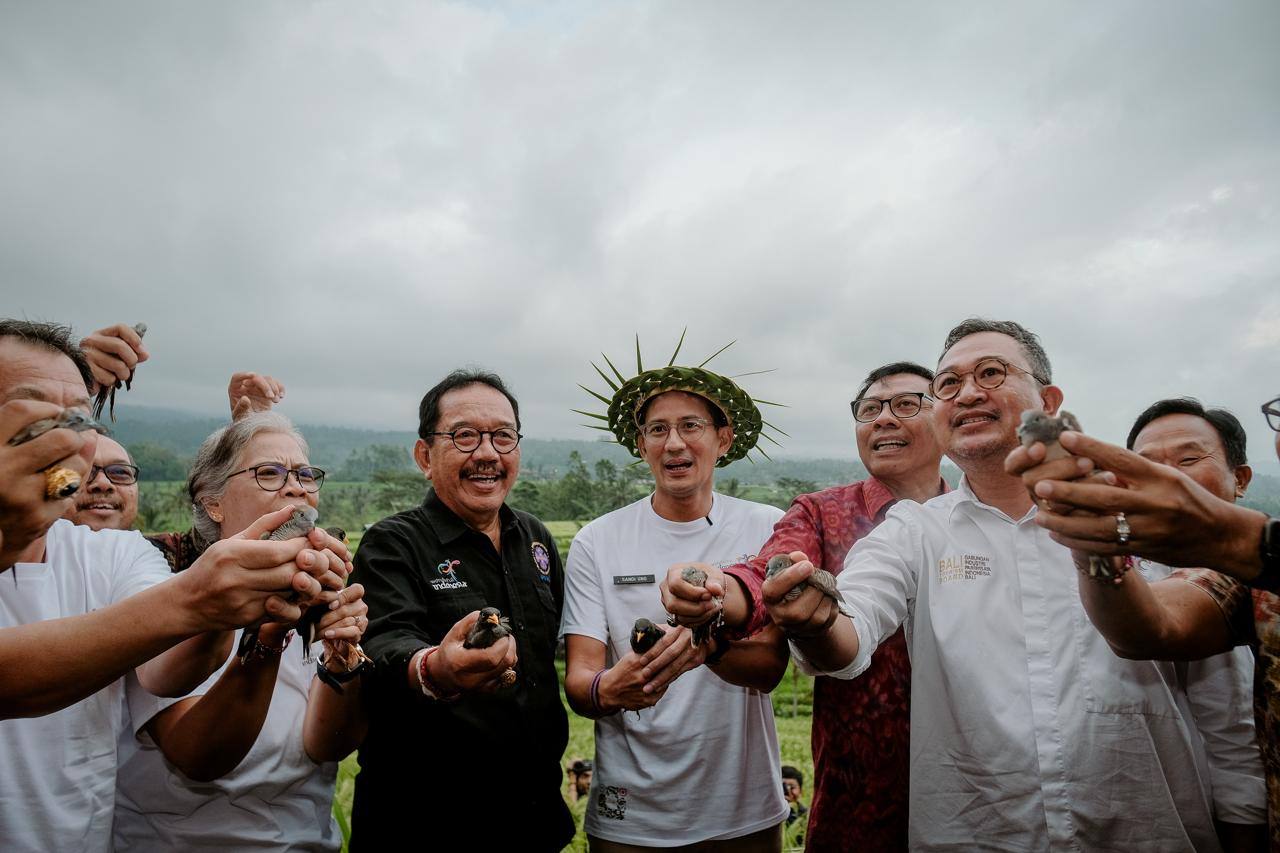 Selain meninjau Desa Jatiluwih, Menparekraf Sandiaga juga menyaksikan pelepasan burung endemik khas Bali dan cara pengusiran burung yang disebut dengan Kepuakan.
