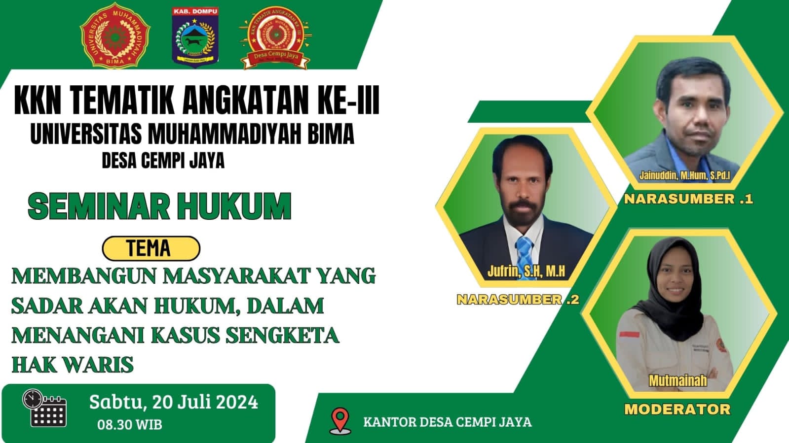 Kab.Dempu–Seminar hukum waris mahasiswa KKN UM Bima angkatan III tahun 2024. Pada kegiatan KKN Tematik UM Bima, kelompok desa cempijaya kec. Huu Kab. Dompu, melaksanakan seminar hukum yang berkaitan dengan proses pembagian warisan menurut hukum Islam,