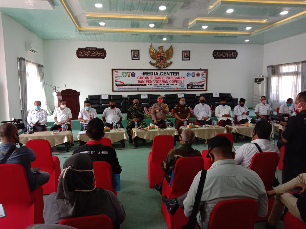 Berita Aceh Timur- Pelaksanaan Konferensi Pers Gugus Tugas Pencegahan dan Penanganan Covid-19 Kabupaten Aceh timur bertempat di Gedung Serbaguna Kabupaten setempat di warnai aksi wall out oleh sejumlah awak media, Rabu, 19 Agustus 2020.