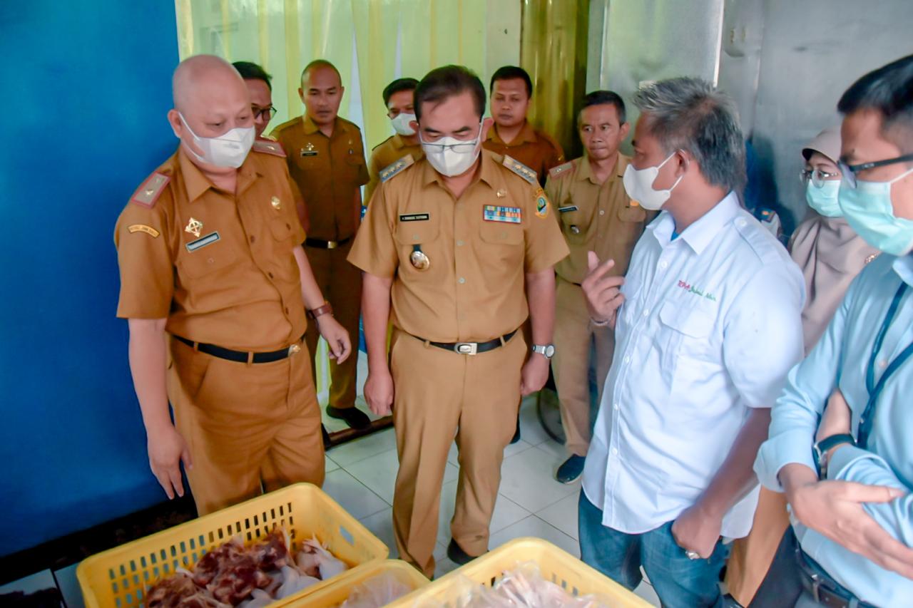 Kabupaten Ciamis -‘ Pj Bupati didamping oleh Tim Pengendali Inflasi Daerah (TPID) berdialog langsung dengan perusahan rumah potong ayam jabal nur H.Heri Santosa yang juga ketua kelompok peternak unggas di kecamatan Cihaurbeti senin (13/5/2023)