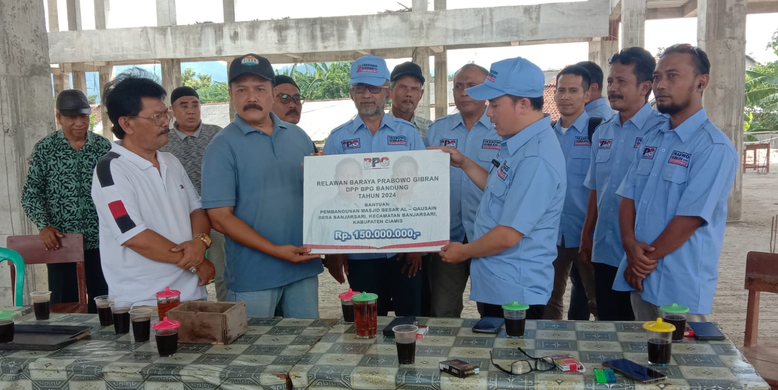 Kabupaten ciamis—Peduli peningkatan pembangunan bidang keagamaan, team Baraya Prabowo Gibran/BPG berikan bantuan untuk pembangunan Mesjid besar Al-Qausaen Banjarsari kec banjarsari kabupaten Ciamis (Jumat, 26 Januari 2024)