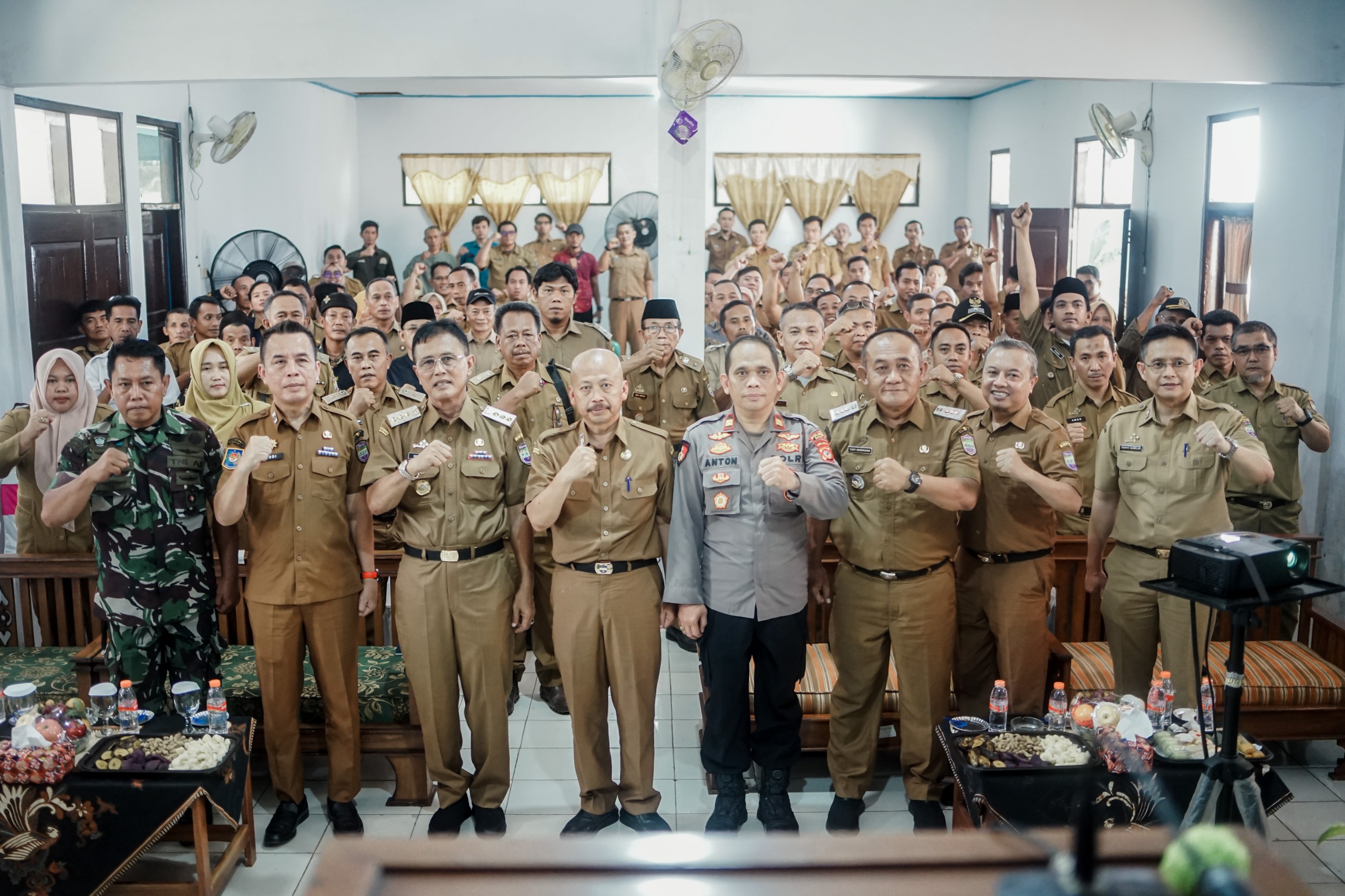 Selain itu, kegiatan ini juga melibatkan unsur Kecamatan dan Forum Koordinasi Pimpinan Kecamatan (Forkopimcam), di antaranya Camat, Kapolsek, Danramil, Sekretaris Kecamatan, Kasi Tata Pemerintahan, serta Kasi Pemberdayaan Masyarakat Desa (PMD), sebagai wujud sinergi lintas sektor dalam penguatan penyelenggaraan Pemerintahan Desa.