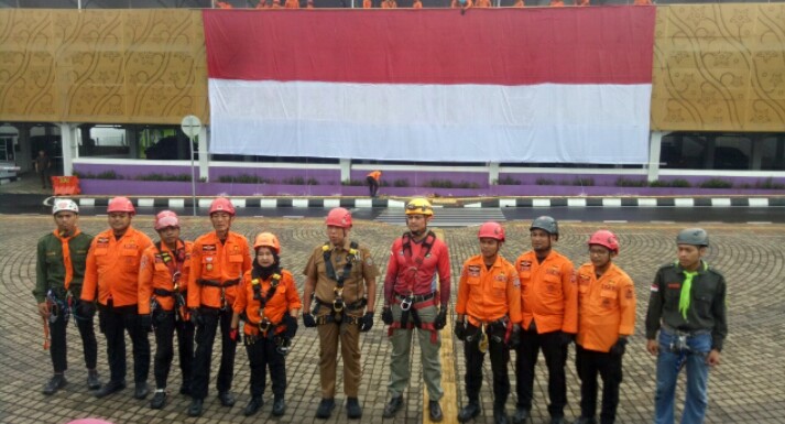 Kepala Pelaksana BPBD Ciamis, Ani Supiani,mengatakan,”pembentangan bendera melibatkan 25 personel BPBD, Kesbangpol, relawan komunitas pecinta alam, PMI, SMK Negeri 1 Ciamis, hingga Panjat Tebing Kabupaten Ciamis.