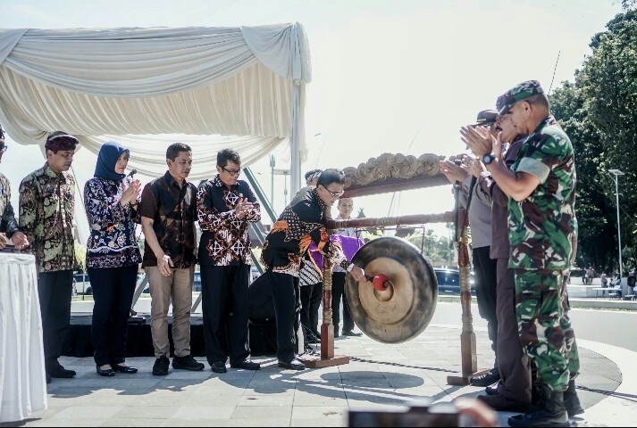 Peresmian ditandai dengan pemukulan gong, disaksikan oleh jajaran Forkopimda Ciamis dan tamu undangan lainnya.