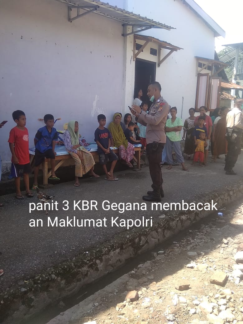 Selain itu juga panit 3 KBR Gegana membacakan Maklumat Kapolri n Edukasi tentang penyebaran dan Memutus Mata rantai penyebaran Virus Corona.