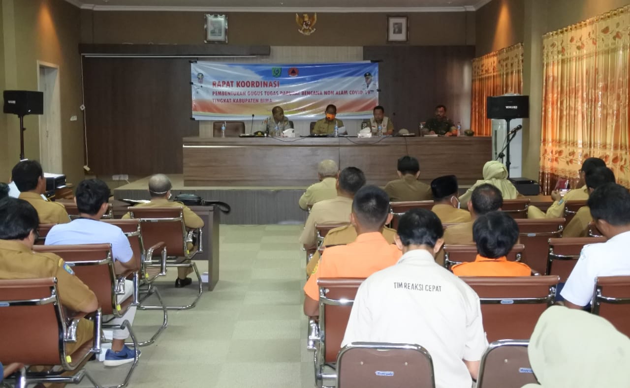 Berita Kab.Bima —- Mengantisipasi meluasnya wabah penyakit Corona Virus Desease (COVID-19) di seluruh wilayah kecamatan, Pemerintah Kabupaten Bima Senin (23/3) mengadakan Rapat Koordinasi (Rakor) Pembentukan Gugus Tugas Bencana Non Alam Covid 19 Tingkat Kabupaten Bima di Ruang Rapat Kantor Bupati Bima.