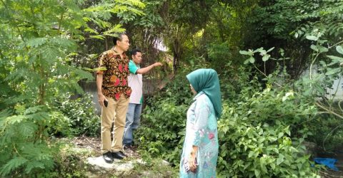 DR.Ir. Syamsuddin MS. Yang Di Dampingi Kasek. SDN 43 Hartuti S Pd.Saat Meninjau langsung kondisi sekolah SDN. 43. Pagar Yang Roboh Akibat Banjir Tahun Lalu. yang Sampai Sekarang Belum Ada Perbaikan.