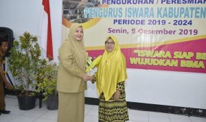 BERITA KAB.BIMA (NTB) —— Bupati Bima Hj Indah Dhamayanti Putri, SE menghadiri Pengukuhan Pengurus dan Anggota Iswara Kabupaten Bima Periode 2019-2014. Acara tersebut dilangsungkan di Aula Sekretariat Gedung DPRD Kabupaten Bima, Senin (09/12). Selain dihadiri Pimpinan Dewan, kegiatan yang berlangsung khidmat itu juga dihadiri sejumlah Anggota Dewan Kab. Bima beserta pejabat lingkup Pemkab Bima.