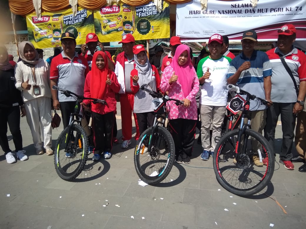 Menariknya lagi, berbagai hadiah menanti usai gelaran jalan santai yang dilepas oleh Sekda Kota Bima, H Muhtar Landa, SH, MH dan Kepala Dinas Pendidikan dan Kebudayaah (Dikbut) Kota Bima, di halaman Kantor Wali Kota Bima itu. Ketua PGRI Kota Bima, Drs H Sudirman Ismail, M.Si dan Hj Suharni HM Talib bersama jajaran guru memacu gerak langka hingga di lapangan Merdeka atau Serasuba Kota Bima. Di sana mereka berjoget ria bersama arti Kota Bima. Bukan hanya itu, Ketua PGRI dan istri nyanyi bersama tembang nostalgia, sedangkan Sekda dan lainnya ikut berjoget ria.