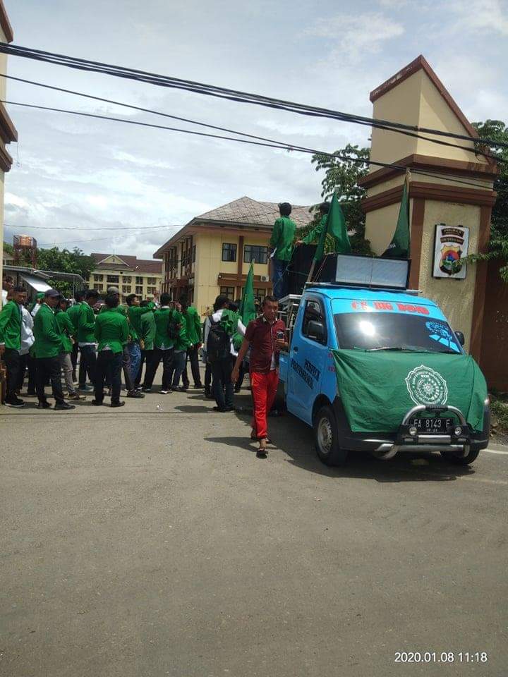 Berita Kota Bima — Ratusan Mahasiswa yang tergabung dalam Badan Eksekutif Mahasiswa (BEM) Sekolah Tinggi Ilmu Hukum (STIH) Muhamadiyah Bima menggelar aksi unjuk rasa di depan kantor Mapolres Bima Kota-Nusa Tenggara Barat, pada Rabu (8/1/2020).
