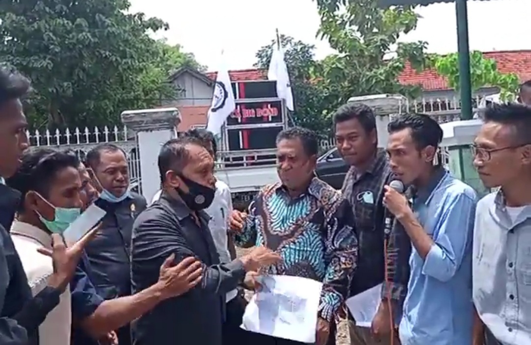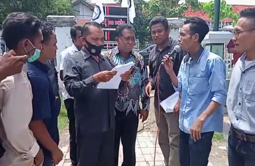 Berita Kab.Bima— Ketua Badan Kehormatan (BK) DPRD Kab.Bima Ir. Suryadin, HAR didampingi oleh dua unsur pimpinan yaitu ketua Fraksi Partai Gerindra Ruslan,Spd dan Wakil Ketua DPRD Fraksi Partai Gerindra Yasin,Spdi keluar menemui masa aksi dari LeSham Bima yang sedang menyampaikan aspirasi didepan gedung DPRD kab.bima,