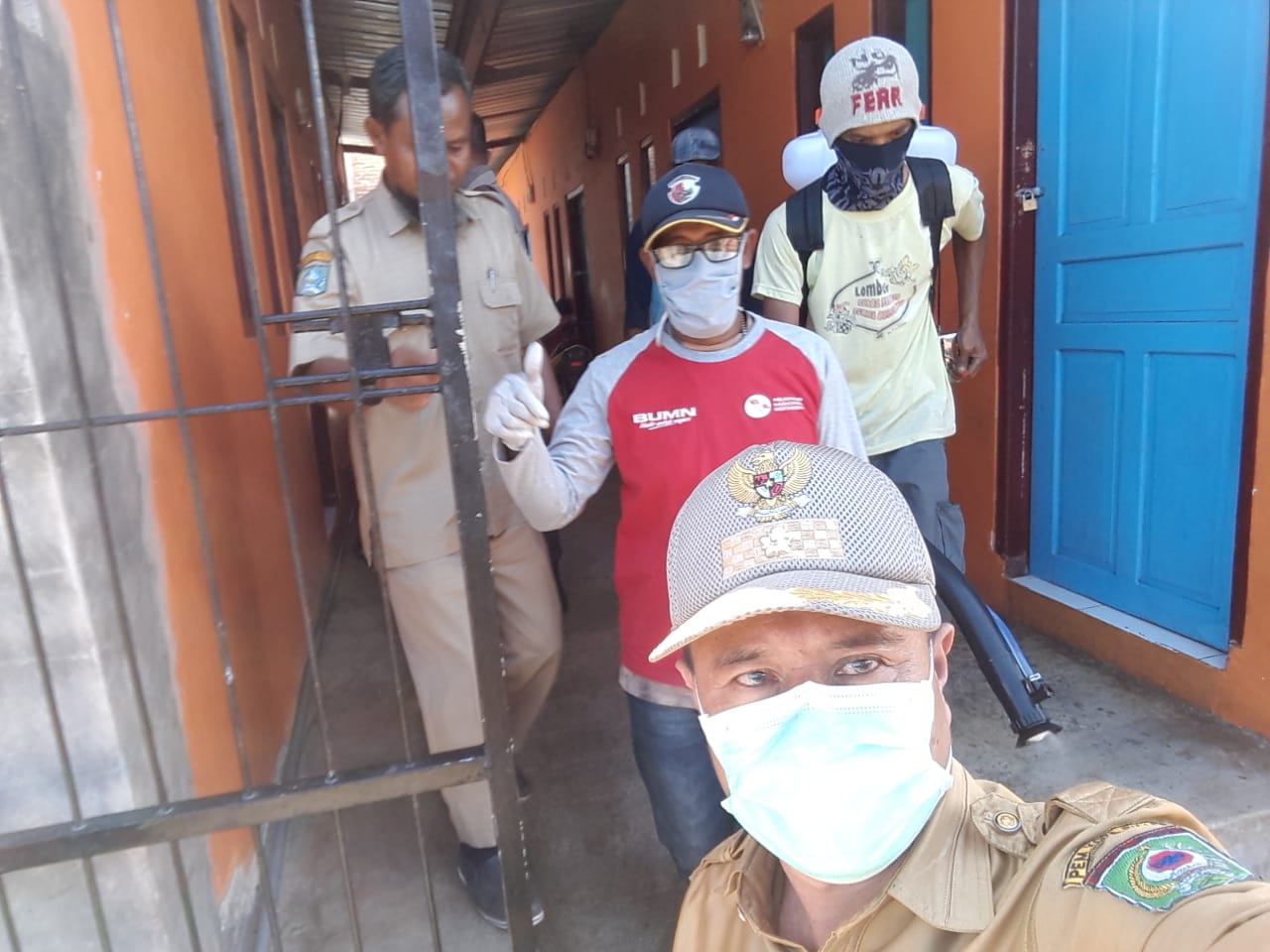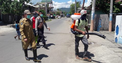 Berita Kota Bima —– Untuk mencegah penyebaran virus covid-19 Babinkantikmas Kel Melayu BRIPKA Feri Fadlin dan Lurah Melayu melakukan penyemprotan disinfektan dan menyampaikan himbauan tentang Virus Corona/ Covid-19 di Perumamahan RW dan RW. Kel.Melayu Kec.Asakota, Kota Bima NTB Selasa(31/3/2020)
