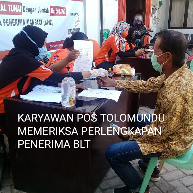 Karyawan Pos Bima juga Memeriksa Kelengkapan Administrasi Warga Penerima BST di Halaman Kantor Pos Tolomundu Kota