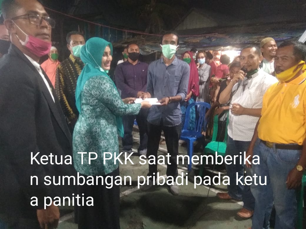 Kemudian dilanjutkan Ketua TP. PKK Kota Bima, (Hj. Ellya H. Muhammad Lutfi) NTB menyerahkan sumbangan pribadi kepada ketua panitia Turnamen Lape