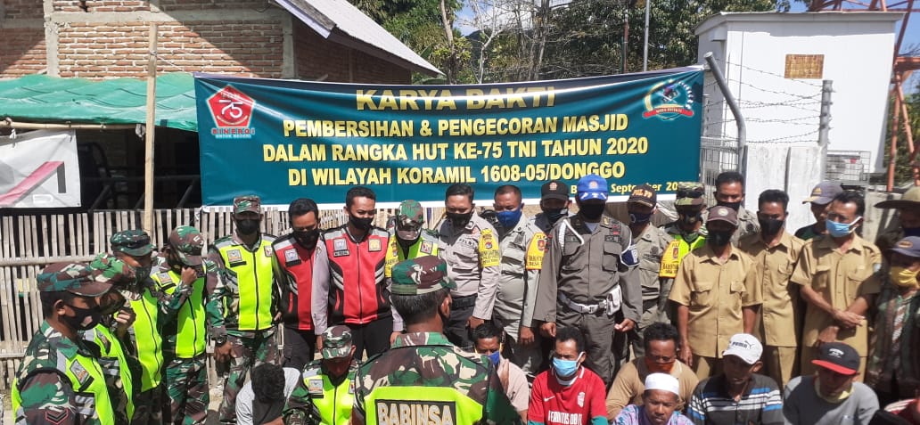 Berita Bima--‘ Menyambut HUT Ke – 75 TNI tanggal 5 Oktober 2020 mendatang, Kodim 1608/Bima menggelar kegiatan Karya Bakti pengecoran Masjid Uwuludin bersama POLRI , Pol Pp , Perangkat desa ,dan seluruh komponen Masyarakat yang Bertempat di di Desa Bumi Pajo Kec. Donggo Kab.Bima,” Selasa (22/09/20).