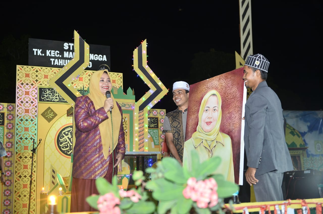 Dalam acara pembukaan STQ, Umi Dinda dapat “kejutan” dari dua orang anak muda yaitu mansyur dan abdul kadir yang menghadiahkan sebuah lukisan potret wajah bupati bima yang disambut gembira oleh Umi Dinda “ Terima kasih ya adik adik, saya terlihat lebih INDAH dilukisan ini “ komentar umi dinda mengapresiasi kedua orang pemuda atas kreativitas mereka.