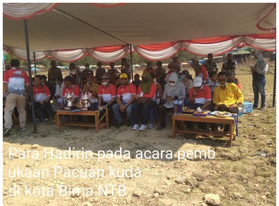 Pacuan kuda yang dibuka secara resmi oleh Walikota Bima, H. Muhammad Lutfi, SE dihadiri oleh sejumlah pejabat, yakni Wakil Walikota Bima, Sekda Kota Bima, Dandim 1608/ Bima, Kapolres Bima, Wakapolres Bima Kota, Kasdim 1608/ Bima, dan sejumlah Kepala OPD Lingkup Pemerintah Kota dan Kabupaten Bima.