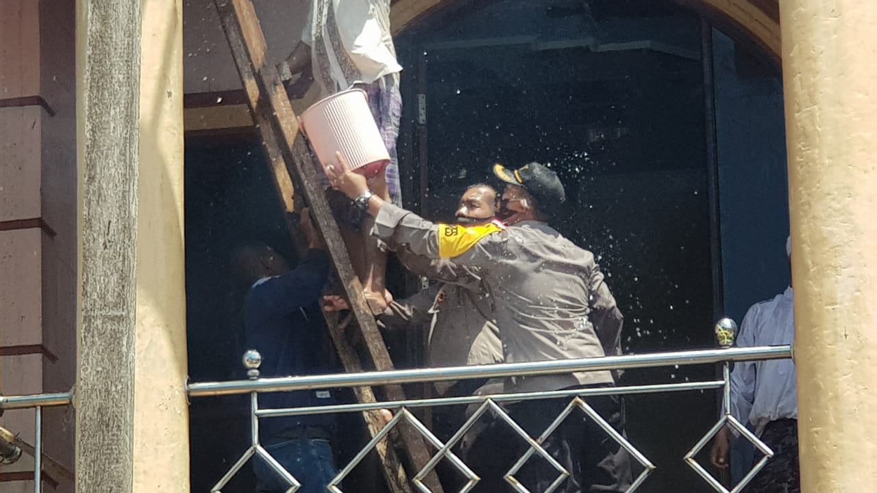 Berita Buol (Sulteng) — Mendengar kabar kantor Bawaslu Kabupaten Buol terbakar seketika Kapolres Buol langsung arahkan personel beserta kendaraan AWC Noto bantu padamkan si jago merah, kantor Bawaslu Kabupaten Buol beralamat di Jalan WR. Supratman No. 15 Leok 2 Kecamatan Biau, Kabupaten Buol, Jumat (25/09/2020).