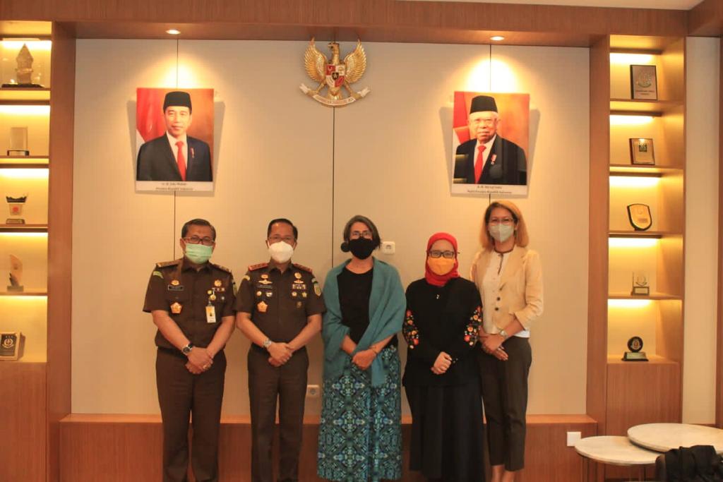 Dalam pertemuan ini, Kepala Badiklat Kejaksaan RI didampingi oleh Kepala Pusat Pendidikan dan Pelatihan Teknis Fungsional pada Badiklat Kejaksaan RI, Dr. Yulianto, S.H. M.H. beserta pejabat struktural di Pusat Diklat Teknis dan Fungsional (Pusdiklat DTF), sementara Ms. Kiersten Van-Camp Horn didampingi oleh dua orang stafnya.
