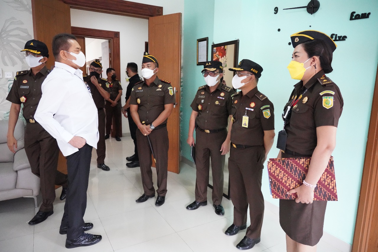 Kunjungan kerja kali ini menurut Jaksa Agung terasa istimewa, karena akhirnya kita bisa langsung bertatap muka, bersilaturahmi, meskipun masih dalam situasi pandemi. Namun kita harus tetap waspada terhadap ancaman gelombang ketiga (third wave) Covid-19, khususnya dari beberapa negara tetangga.