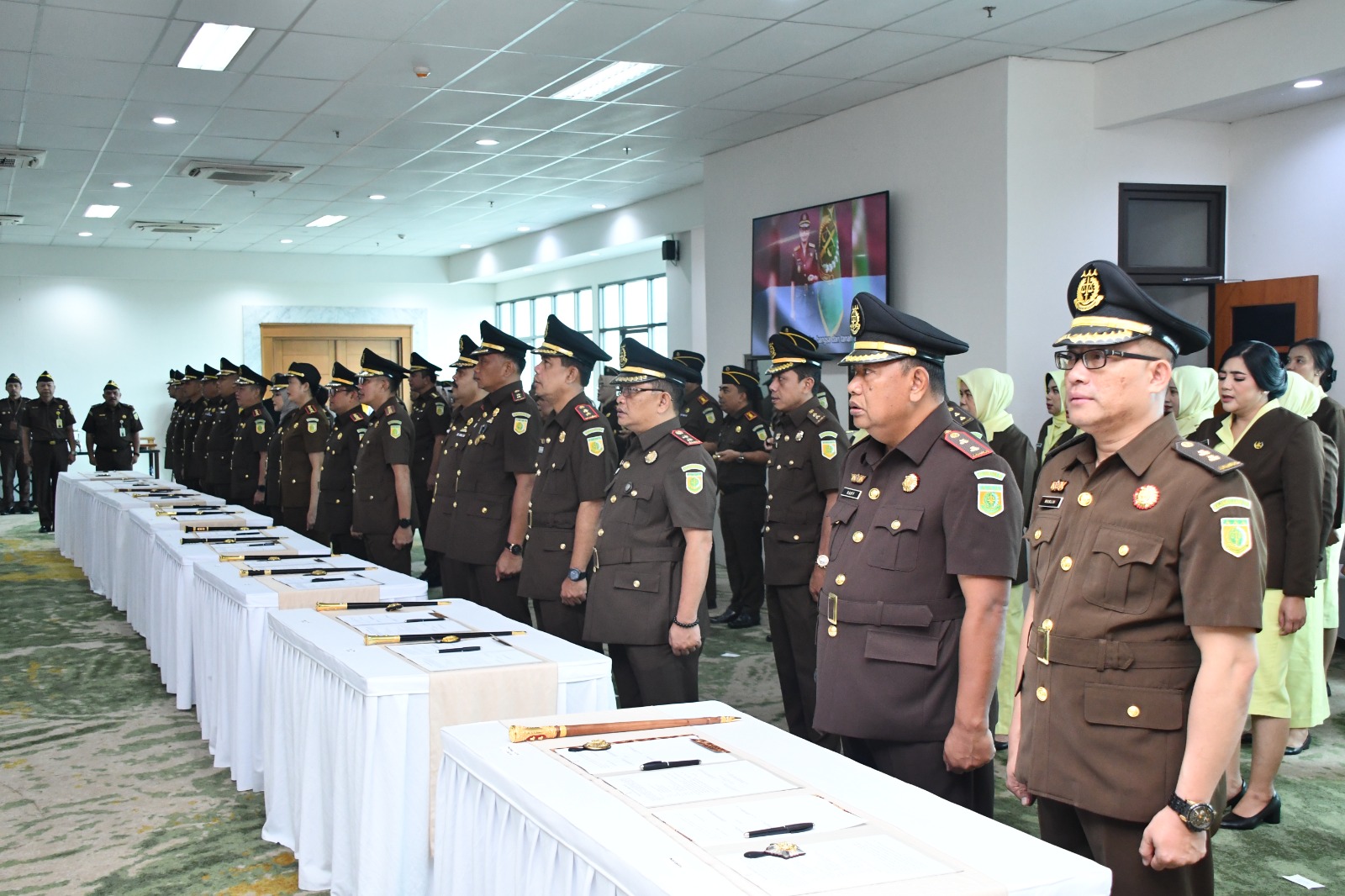 Jabar—Kamis, 13 Juni 2024 bertempat di Aula R.Soeprapto Kejaksaan Tinggi Jawa Barat, telah dilaksanakan acara pelantikan dan serah terima jabatan pejabat eselon III di lingkungan Kejaksaan Tinggi Jawa Barat. Pelantikan dilakukan oleh Kepala Kejaksaan Tinggi Jawa Barat Katarina Endang Sarwestri, SH., MH. dan turut dihadiri Para Asisten, Kabag TU dan para Koordinator.