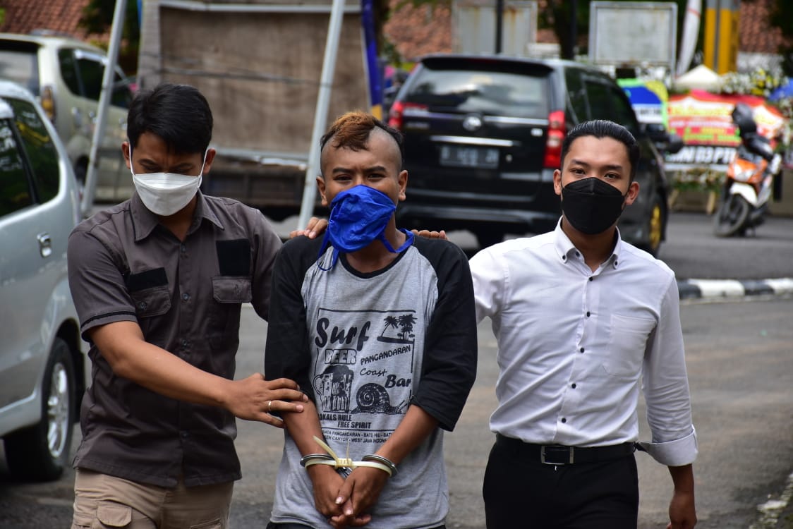 Tersangka MH (18 tahun) setelah melarikan diri selama 2 tahun lamanya akhirnya berhasil diamankan oleh Jajaran Reserse Kepolisian Polres Banjar, Polda Jabar, di jalan raya Pangandaran simpang 3 Lampu merah Stasion wilayah Banjar.