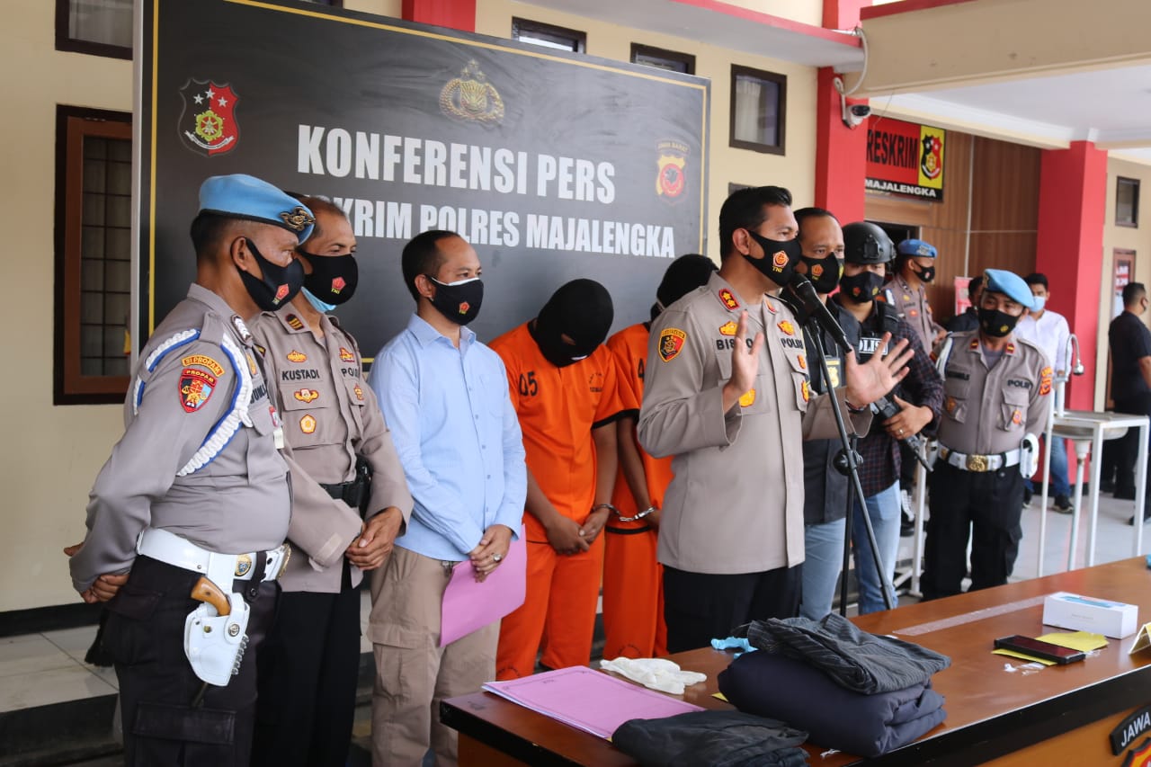 “Pelaku inisial CT (27) dan AT (15) dua-duanya adalah warga Kecamatan Kertajati dan ada dari salah satu pelaku merupakan pelajar SMP,” Ujar Kapolres Majalengka AKBP Dr.Bismo Teguh Prakoso didampingi Kasat Reskrim AKP Siswo DC Tarigan saat konferensi pers dengan awak media, Kamis (26/11/2020).