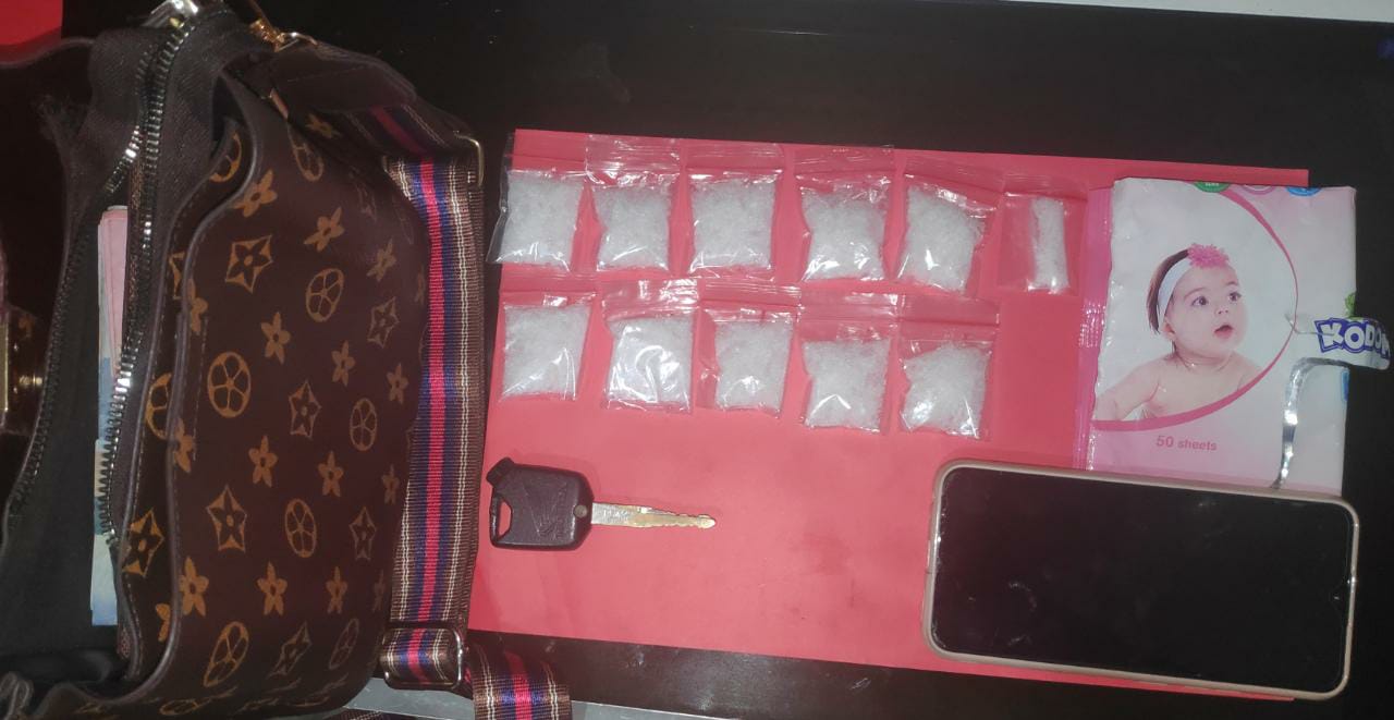“Saat dilakukan penggeledahan, petugas menemukan 11 paket narkotika jenis shabu dengan berat kotor 53,68 gram dibungkus tisu warna pink dan dimasukan ke dalam tas pelaku,” jelasnya.