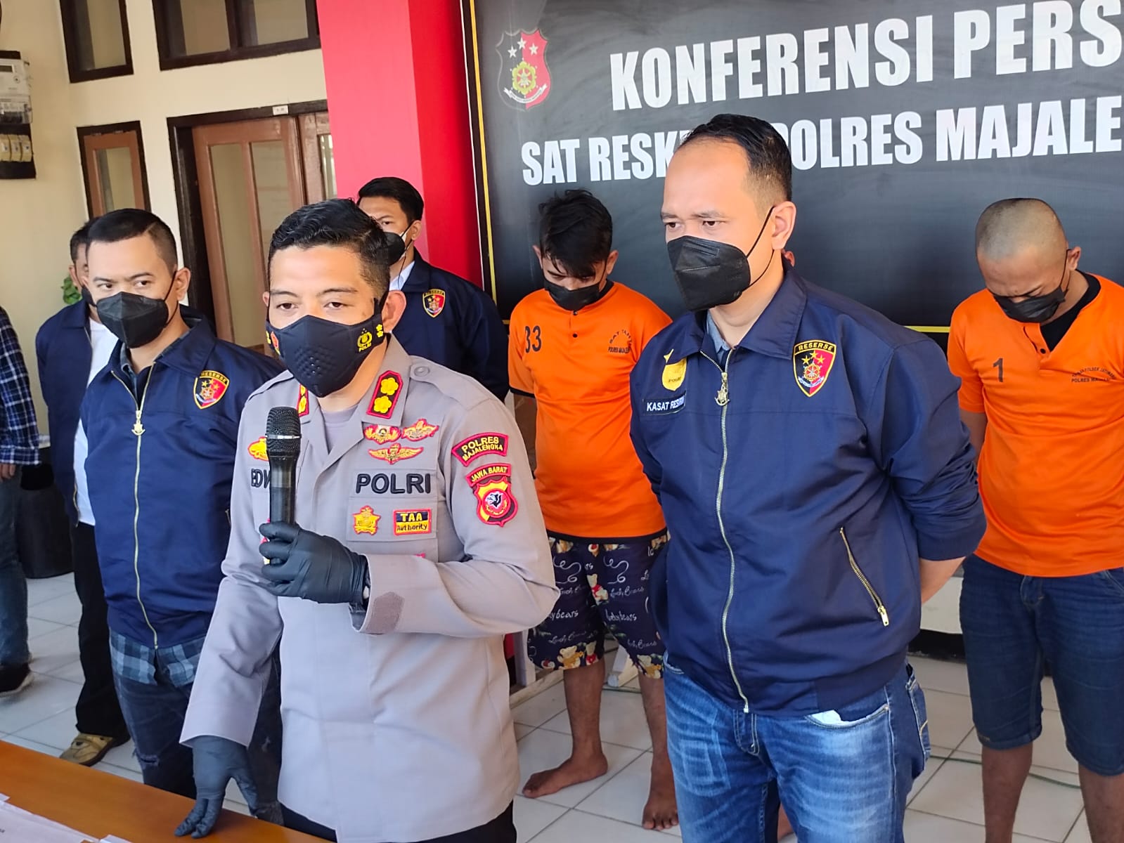 “Dua pelaku kita amankan di sebuah rumah kontrakan di wilayah Kecamatan Majalengka dan satu tersangka lainnya ditangkap di rumahnya di wilayah Kecamatan Cikijing,” ucap Edwin menambahkan.