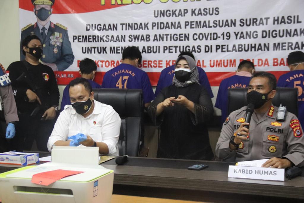 Berita Polda Banten– Direktorat Reserse Kriminal Umum (Dirreskrimum) Polda Banten ungkap kasus sindikat pemalsu surat hasil swab antigen Covid-19 di Kawasan Pelabuhan Merak, Banten.
