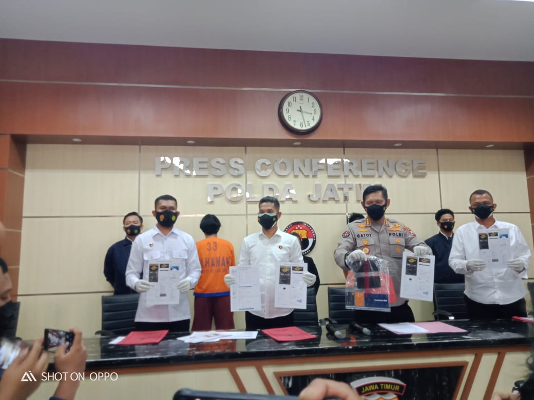 Dalam konferensi persnya, Kabid Humas Polda Jatim Kombes pol Gatot Repli Handoko yang didampingi oleh Wadirreskrimsus AKBP Zulham Effendi mengatakan, penangkapan dua tersangka FSR dan AZ ini berdasarkan hasil pengembangan dari keempat tersangka HTS yang merupakan pelaku yang ditangkap oleh Tim Siber Unit III Subdit V, Ditreskrimsus Polda Jatim.