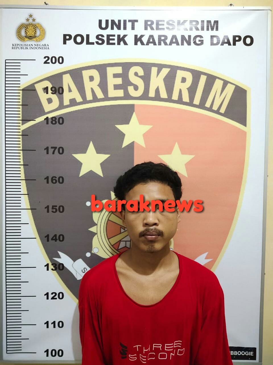 Tersangka ditangkap dirumahnya setelah didapat informasi bahwa pelaku berada di sebuah rumah di Desa Pantai. Setelah mendapat informasi Kapolsek Karang Dapo AKP Hendri Murphiadi memerintahkan Kanit Reskrim IPDA Jumar Bolivar ,SH dan anggota untuk melakukan penangkapan terhadap pelaku. Dari keterangan tersangka perampokan dilakukan bersama temannya warga Desa Pantai bernama Dien.