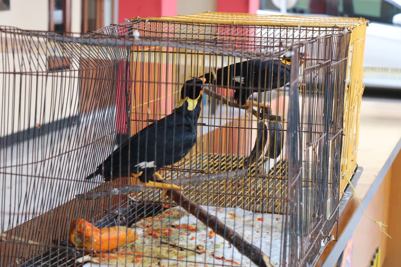 “Pada saat penyelidikan polisi berhasil menemukan dua buah burung tiong emas yang disatukan dengan burung yang tidak dilindungi,” Kata AKBP Bismo.