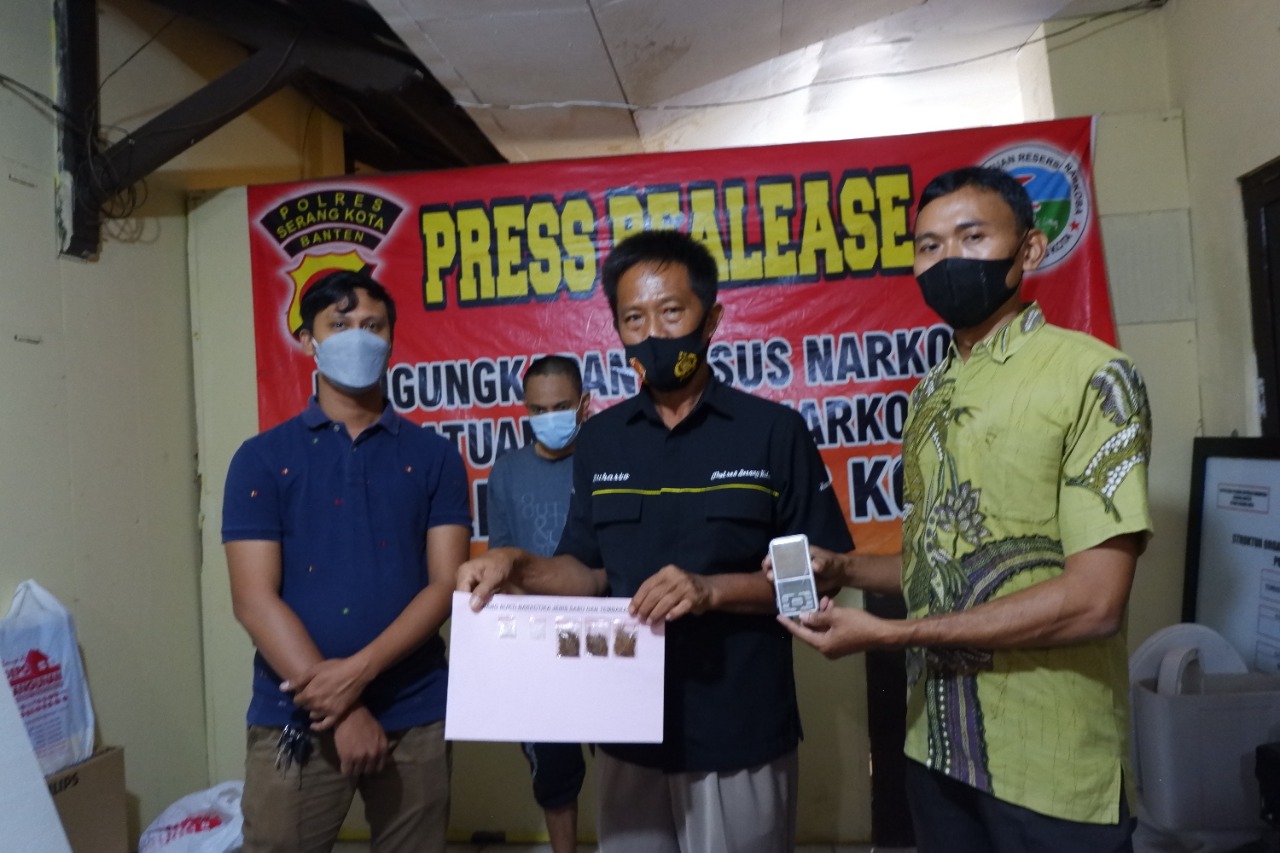 “Berawal dari informasi masyarakat, tetap kami tidak lepas dari koordinasi dengan masyarakat. Dari pihak Satresnarkoba Polres Serang Kota segera menindak lanjuti informasi tersebut dan alhamdulillah bisa terungkap serta mengamankan barang bukti berikut tersangkanya,”kata Kapolres Serang Kota AKBP Yunus Hadith Pranoto, S.IK., melalui Kasie Humas Polres Serang Kota AKP Suharto saat press conference di Mapolres Serang Kota. Jumat (18/6/2021).