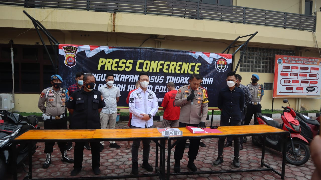 “Hari ini kami melakukan rilis pengungkapan kasus pencurian kendaraan bermotor dengan tersangka yang kami amankan berinisial RH,(28) FM (24) Ya (26),SA (26) dan IM ( 34) serta 8 unit barang bukti roda dua (R2) berbagai jenis dan kunci leter “T ” yang digunakan pelaku untuk melancarkan aksinya dalam Rilis ini hanya 2 (Dua) pelaku yang masih di tahan di Rutan Polres Cilegon dan untuk yang 3 (tiga) pelaku sudah di tahan di Rutan Lapas Cilegon” Ungkapnya