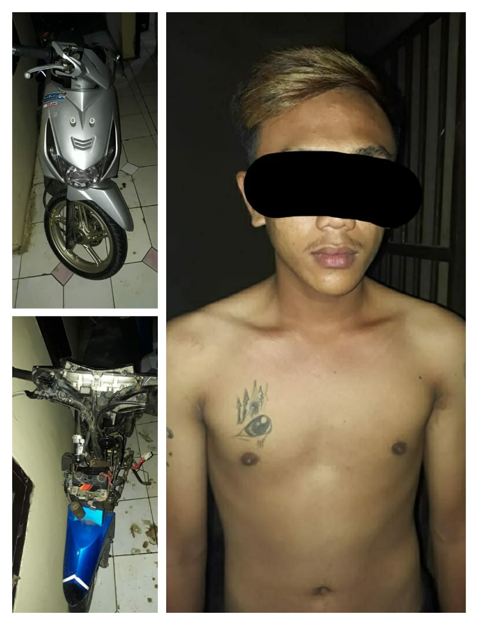 “Dari pelaku kami berhasil mengamankan 1 ( satu ) unit sepeda motor merk Honda Beat warna metalik, nomor rangka : MH1JF5124BK298201, nomor mesin : JF51E2262270, tahun pembuatan 2011, dan 1 ( satu ) unit sepeda motor merk Honda Vario warna biru, nomor rangka MH1JF8118CK618713, nomor mesin : JF81E-1616605. Dari pengakuan tersangka, telah melakukan dua kali pencurian sepeda motor di dua lokasi yang berbeda,” jelas Kompol Yusuf.