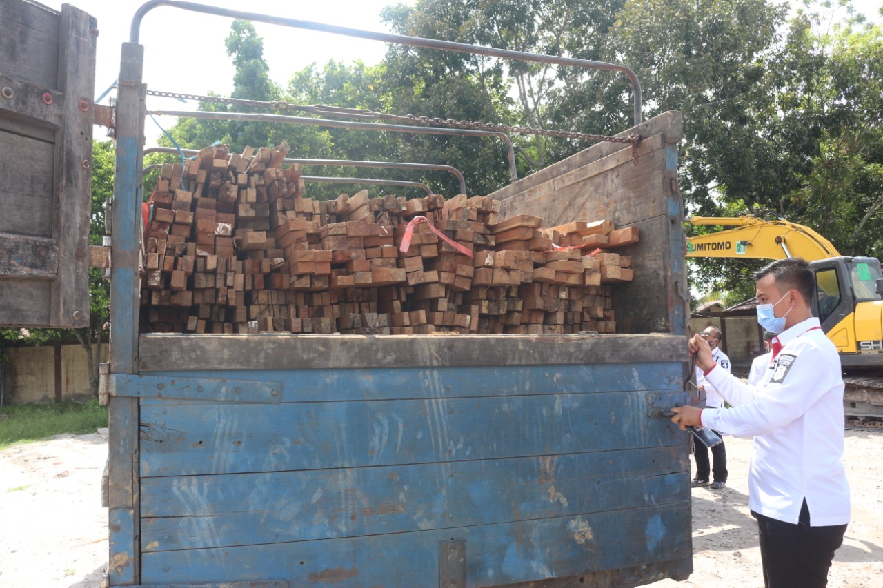 “Penangkapan ke empat tersangka dilakukan di dua tempat yang berbeda yaitu Desa Baronang dan Desa Buhut Kabupaten Kapuas Provinsi Kalimantan Tengah dengan total 32 m3 (kubik) kayu olahan jenis meranti yang rencananya akan di jual ke Kalimantan Selatan,” ujar Sajarod.