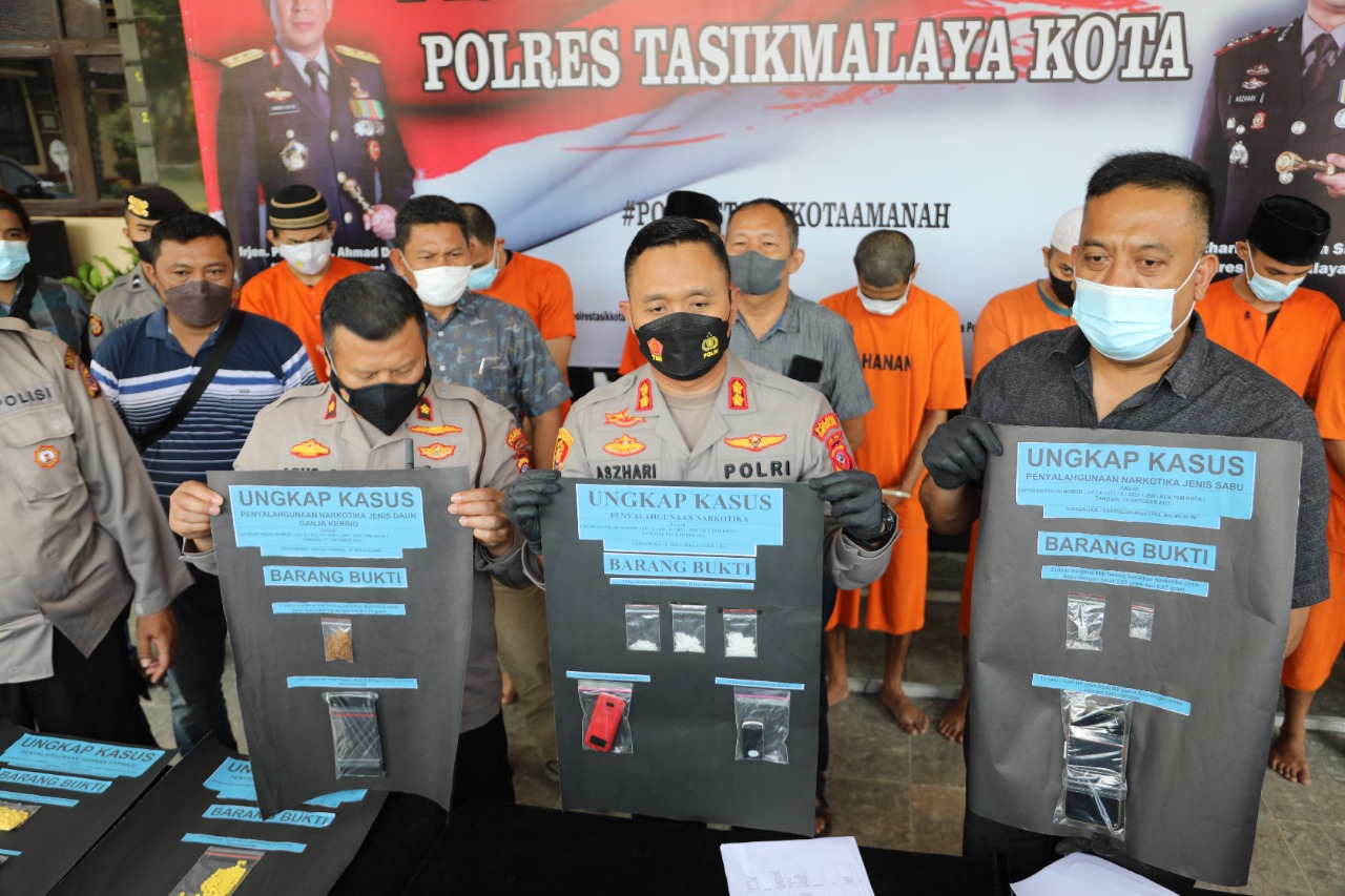 Berita Polres Tasik Kota— Polres Tasikmalaya Kota rilis keberhasilan mengungkap kasus penyalahgunaan narkoba selama bulan Oktober dan berhasil amankan 8 pelaku, Kamis (04/11/21)